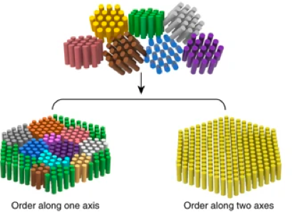 Researchers Achieve Large-area Single Crystal in a Self-assembled Soft Material Medium.com Archive / August 6, 2019 Share: Author: Evan Lerner Researchers Achieve Large-area Single Crystal in a Self-assembled Soft Material Grain boundaries that separate regions of a crystalline material with different orientations impact the material’s overall properties. “Single crystal” metals and silicon are needed for high-performance applications, but achieving this level of control in soft materials has been elusive. By Lauren Salig Controlling structural order in materials is important to optimize their properties in practical applications. In hard materials, like metal alloys or silicon, scientists have mastered this challenge and are able to control the alignment and position of atoms and molecules in crystalline lattices with such fidelity that an entire macroscale structure can be considered to be made out of a single crystal of the material. The aviation industry, for example, relies on single-crystal metal alloys to make turbine blades that can withstand higher operating temperatures, leading to better jet engine efficiency. Likewise, microelectronics require single-crystal silicon for reliable memory devices and processors. For soft materials, however, scientists largely lack the ability to manipulate microstructural order with the same efficacy. While some soft materials have been manipulated into a single-crystal texture, this has been achieved only on small scales and with considerable effort. Now, researchers have published a study in the journal Nature Materials that demonstrates a new way of achieving this level of control in soft materials. Grain boundaries that separate regions of a crystalline material with different orientations impact the material’s overall properties. “Single crystal” metals and silicon are needed for high-performance applications, but achieving this level of control in soft materials has been elusive. The study was conducted by Chinedum Osuji, Eduardo D. Glandt Presidential Professor in the Department of Chemical and Biomolecular Engineering, along with Xunda Feng and Kohsuke Kawabata, who were postdoctoral researchers with Osuji at Yale University when the research was conducted. “In general, scientists seek to produce single crystals for a variety of reasons,” Osuji says. “Two of the strongest are, first, because the properties of materials are often best understood at a fundamental level in the single-crystal state, and second, to leverage the unique properties that some materials display in their single-crystal states in practical applications.” Coaxing materials into a single crystal can enable better performance in everyday devices. Single-crystal silicon is useful for computer chips, for example, because electrons can flow unimpeded by grain boundaries, the interfaces between regions in the material with different crystal orientations. Likewise, some single-crystal soft materials, such as block copolymers, are of interest for use in digital storage, but due to the difficulty of creating single crystals by aligning the microstructure of these materials, the full extent of their potential is yet to be realized. Osuji and his colleagues set out to find new ways of doing that microstructure alignment. “The system we studied is called a ‘columnar discotic mesophase,’” Osuji says. “That means it’s a system that is composed of disc-like molecules that stack into columns that are then packed in an orderly fashion, in this case, hexagonally. The hexagonal packing is similar to what you see if you pack a layer or oranges or tennis balls together closely. “We realized that the tilt of the discs provided a means to control the orientation of the hexagonal lattice on which the columns sat,” he says. The fundamental challenge the researchers faced was achieving microstructure alignment in more than one direction. They needed to control the orientation of the hexagonal lattice while also controlling the orientation of the columns themselves. The researchers combined two techniques to get their soft material to assemble itself into the desired single crystal structure: physical confinement and magnetic fields. By confining the material to a thin film while applying a magnetic field, the team established a method that could reliably create single crystals of their material at a macroscale level of greater than 10 square centimeters. Osuji believes this breakthrough is the first step in achieving highly ordered arrays of other materials of interest and in learning how soft materials in this state could best be utilized in real-world applications. “Arrays of inorganic materials produced from single-crystal templates are of interest for high density storage and for fabrication of metamaterials,” says Osuji. “Another goal is to use the single crystals we generated as seeds for growth of even larger single crystals.” Read the paper at Nature Materials, and learn more about Osuji’s research on his lab website. This work was supported by the National Science Foundation through grants DMR-1410568, CMMI-1246804, and PFI:AIR-TT IIP 1640375. Read More Penn Engineering’s Blinking Eye-on-a-Chip Used for Disease Modeling and Drug Testing Penn-led Team Receives DARPA Grant to Develop Electronic-photonic Chips for Highly Efficient Data Transfer