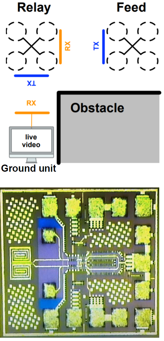 Near-zero incremental cost of transistors in advanced silicon processes with operation frequencies approaching THz regime opens up many impactful and exciting research topics that may result in new applications in detection and sensing, communication, and bio-technology. Meanwhile, despite important achievements in battery technology, the recent trends show that the advancements in battery technology have been significantly slower than that of silicon electronic technologies. At the same time, the market demands more functionalities and better performance from new electronic devices making it essential for RF and mm-wave engineers to come up with new components, techniques, and architectures to improve the performance while reducing the power consumption. Under INTEL center for wireless autonomous systems (WAS), we are implementing ultra-low power mm-wave drone-drone communication links capable of rapid beam tracking and alignment.